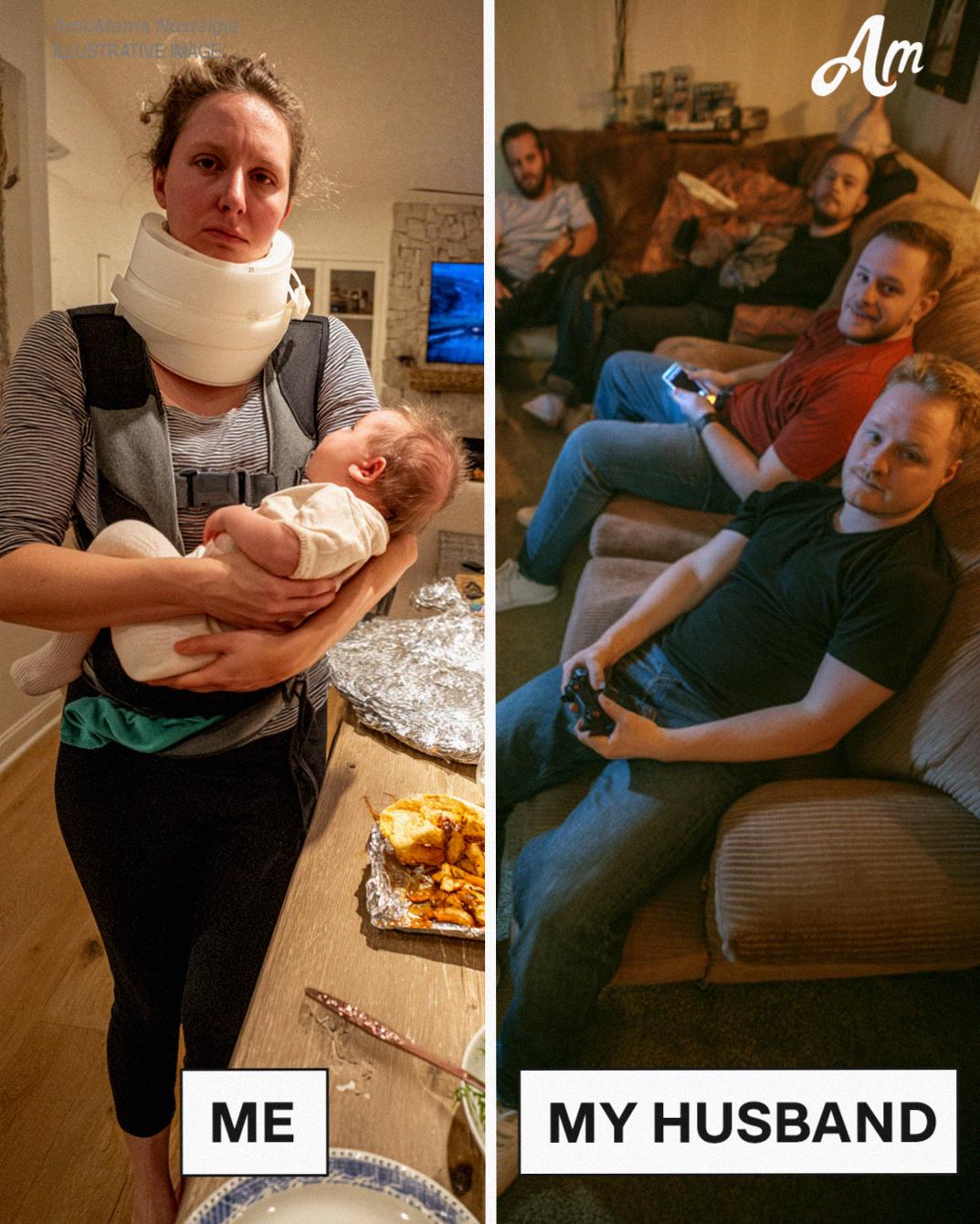I’m on maternity leave, living in a two-bedroom house I can’t currently leave without help, wearing a neck brace because my husband was scrolling Instagram at a red light.